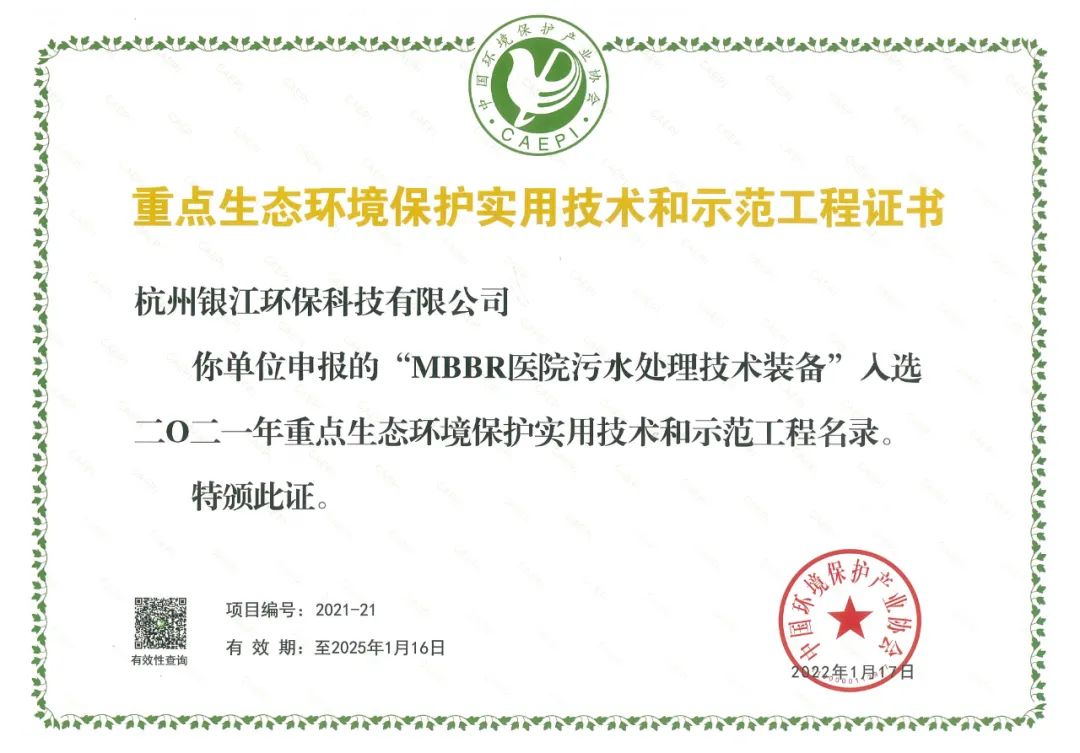 銀江環保《廢水中污染物監測、降碳及高值回收的創新技術與規模應用》獲2021年度江蘇省科學技術獎二等獎。