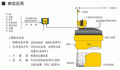 銀江自動加藥裝置時以一個專用中央控制器為核心,并配置1-3只藥桶、攪拌器、液位器、計量泵、檢測探頭、電磁閥及其他外部信號輸出設(shè)備等構(gòu)成。以循環(huán)冷卻水的電導(dǎo)率只為檢測對象,通過測定循環(huán)水的電導(dǎo)率值來衡量水質(zhì)質(zhì)量,發(fā)出加藥、排污信號,并通過外部設(shè)備完成加藥、排污,從而實現(xiàn)系統(tǒng)的自動運行,在實現(xiàn)殺菌滅藻、阻垢、緩蝕的同時保持水體一定的濃縮倍數(shù)。主機及主要部件均采用原裝進口產(chǎn)品。