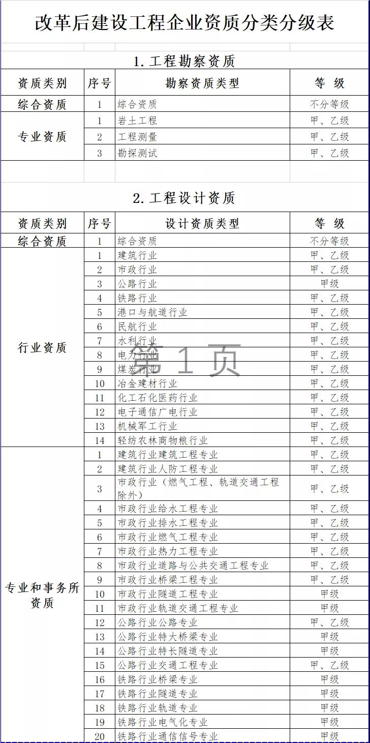2.改革后建設(shè)工程企業(yè)資質(zhì)分類分級表