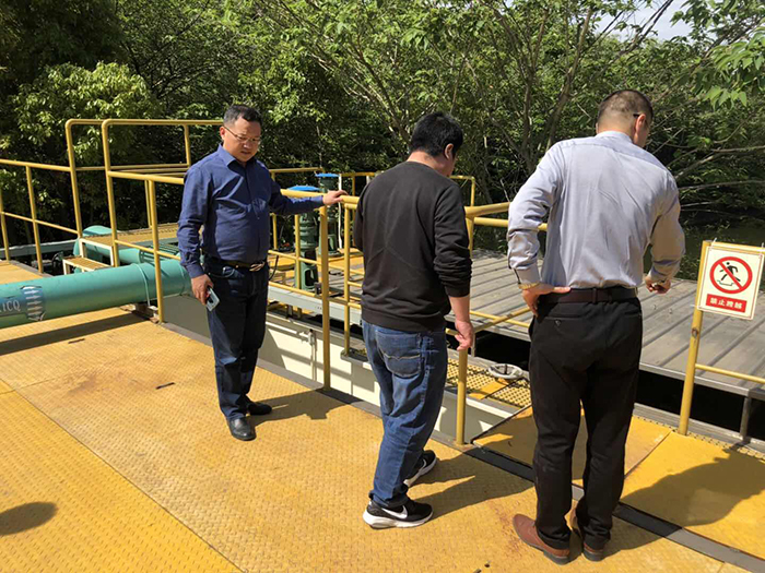 5月8日下午,山東青島建設(shè)局領(lǐng)導(dǎo)一行參觀了我司南京江寧區(qū)泵站污水原位擴(kuò)容處理項(xiàng)目現(xiàn)場(chǎng),在葉總親自陪同講解下客人們?cè)敿?xì)了解了該項(xiàng)目的工藝流程,查看了設(shè)備進(jìn)出水,對(duì)我司的工程質(zhì)量及“KtCQ-KtIC快速凈化成套裝置”技術(shù)給予高度評(píng)價(jià)。