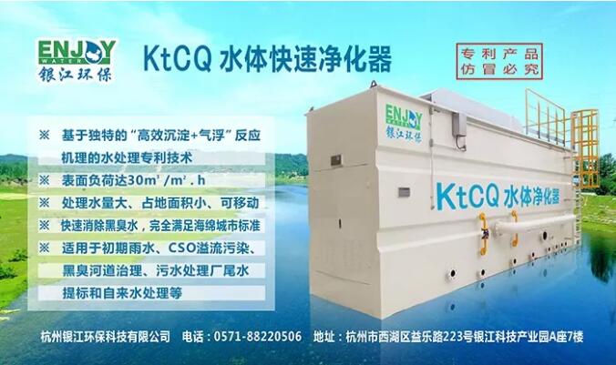 銀江環保KTLM高效能污水凈化系統集成預處理技術、高效物化技術和高效能生化技術于一體,處理水量大。能對生活污水、雨污混合水體進行高效處理,出水水質主要指標達《地表水環境質量標準》(GB3838-2002)的五類以上。