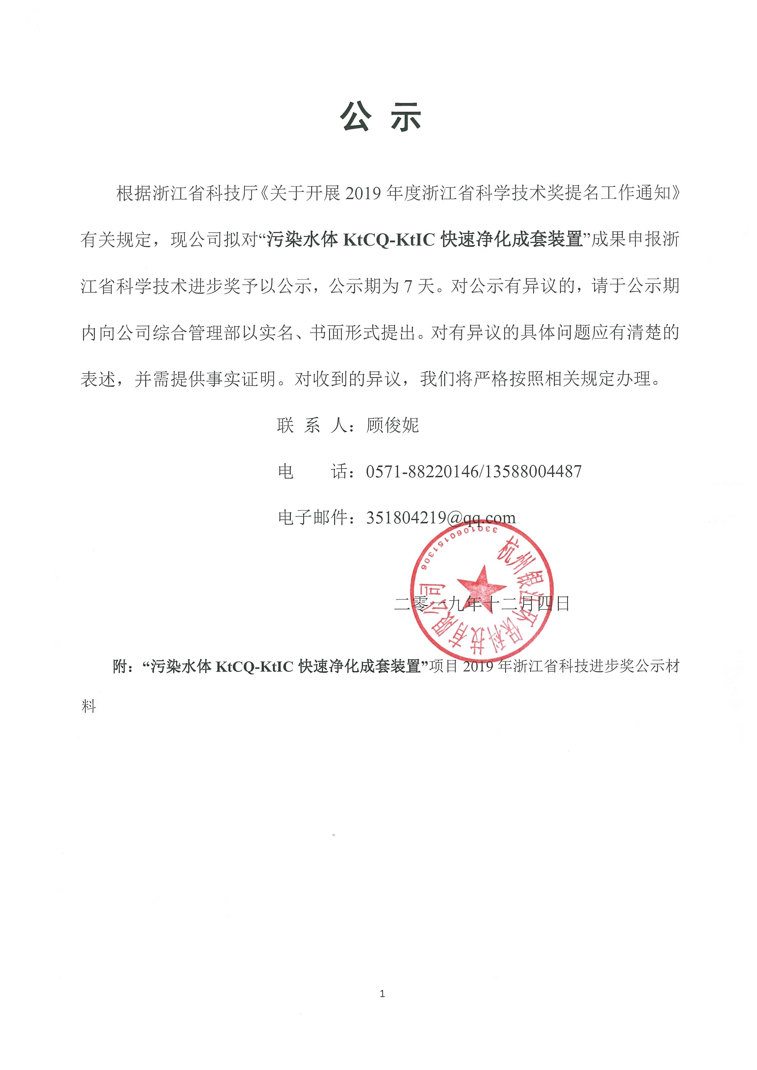 浙江省科學技術進步獎公示發布日期:2019-12-04