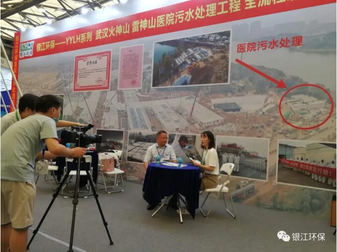 銀江環(huán)保是武漢火神山雷神山醫(yī)院污水處理工程的全流程系統(tǒng)供應商,醫(yī)院污水處理系統(tǒng)YYLH系列榮登第21屆中國(上海)環(huán)博會首發(fā)平臺,正式亮相。YYLH首發(fā)由銀江環(huán)保葉董與兩位抗疫英雄王立軍、付宇主持剪彩,現(xiàn)場氣氛熱烈,并與業(yè)內(nèi)同行和潛在客戶進行了的交流互動。葉董現(xiàn)場回答了多位客戶對我司YYLH系列的提問,并接受了多個媒體針對火神山、雷神山項目的采訪。
