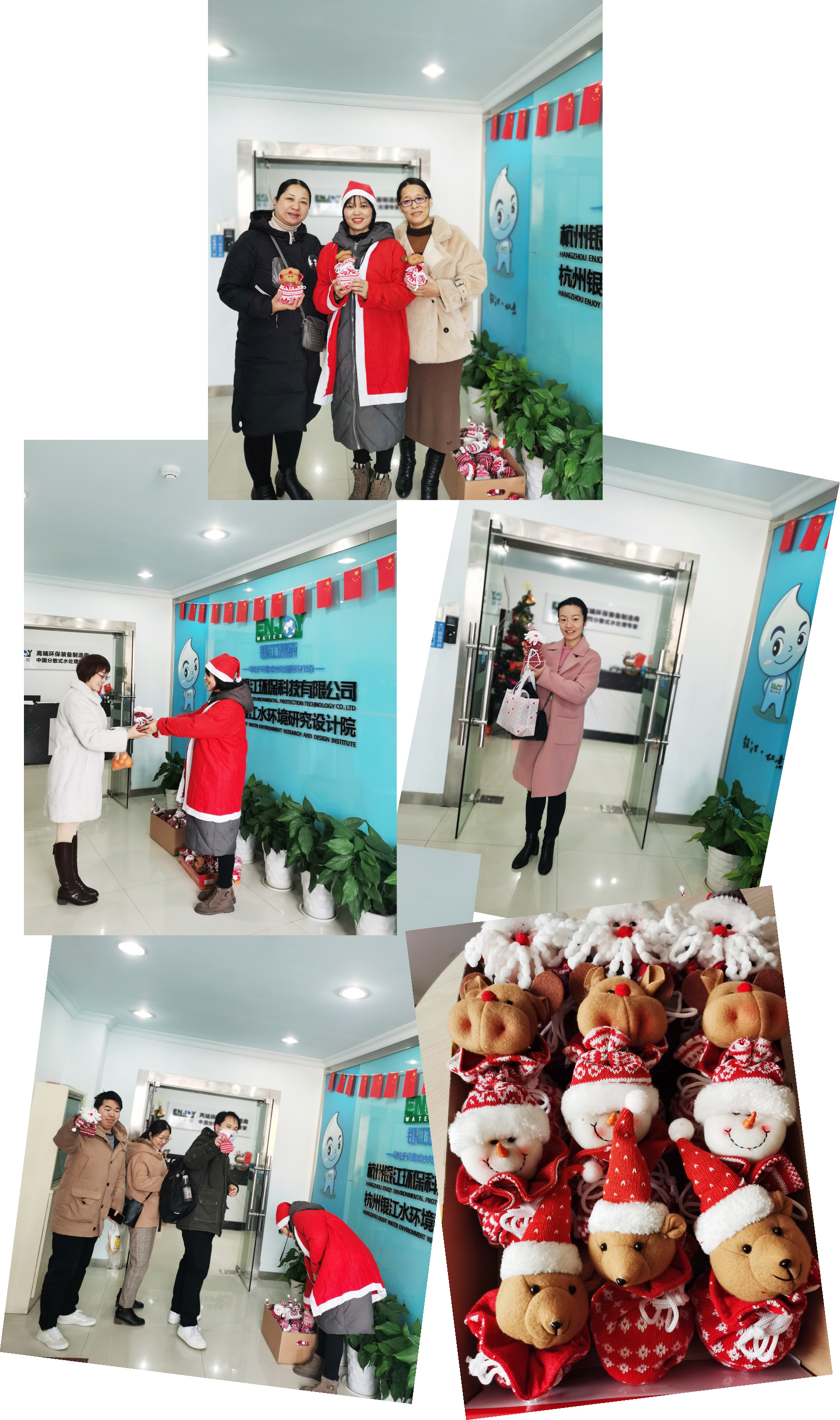 公司里洋溢著節日的氣氛,后勤部為每位同事準備了精美的圣誕禮物,由圣誕老人派發給大家。