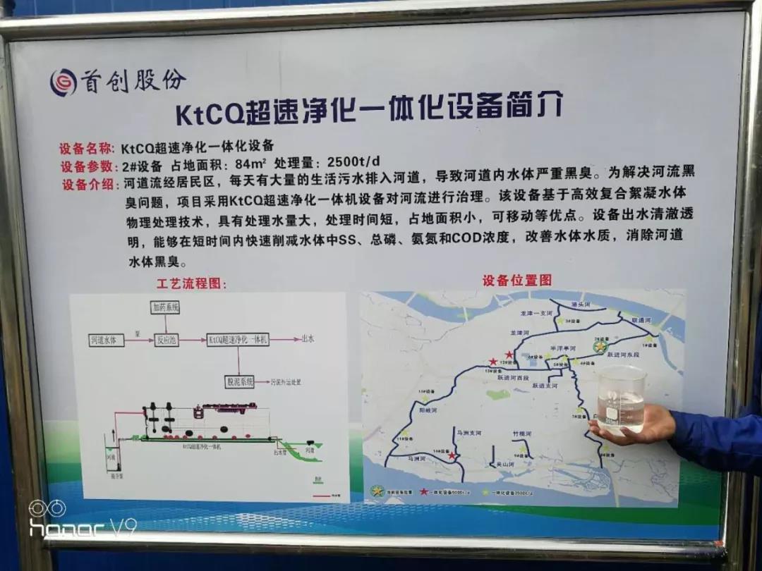 項目概述:2017年,福州市全面開展了102條(分7個水系治理包)內河的治理運營工作,打造城市景觀生態河道,構建健康水生態系統,實現“近期消除黑臭,遠期長治久 清”的目標。倉山龍津陽岐水系綜合治理及運營維護PPP 項目(下稱:龍津陽岐水系治理)是第5包,中標單位是首 創股份,該水系位于福州南臺島中東部,共13條河流河道 總長31.43公里,黑臭水體11條,環保部聯手重點掛牌督辦 的黑臭水體有5條(龍津河、陽歧河、躍進河、白湖亭河、 龍津一支河)。該項目通過招標確定杭州銀江環保為一體化設備供應商, 我司因地制宜結合各河道實際水質水量和周邊環境特點, 采用KtCQ水體凈化器應急處理初雨調蓄池污水,同時兼具 河道應急處理,在短時間內快速削減水體中的SS、總磷、氨氮和COD濃度,改善水體水質,消除河道水體黑臭,確保2017年12月31日前完成了90%以上指標。